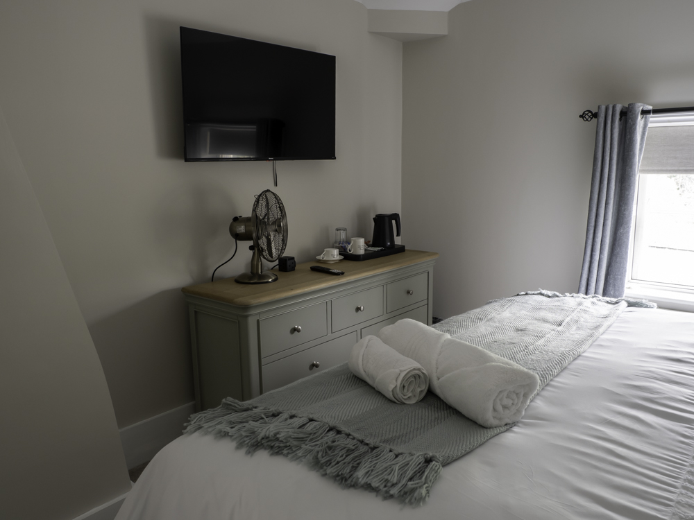 Enjoy a range of modern amenities, including a 43” TV, hairdryer, tea and coffee-making facilities, a suitcase rack, a fan, complimentary bottled water, WiFi, and USB chargers for added convenience.