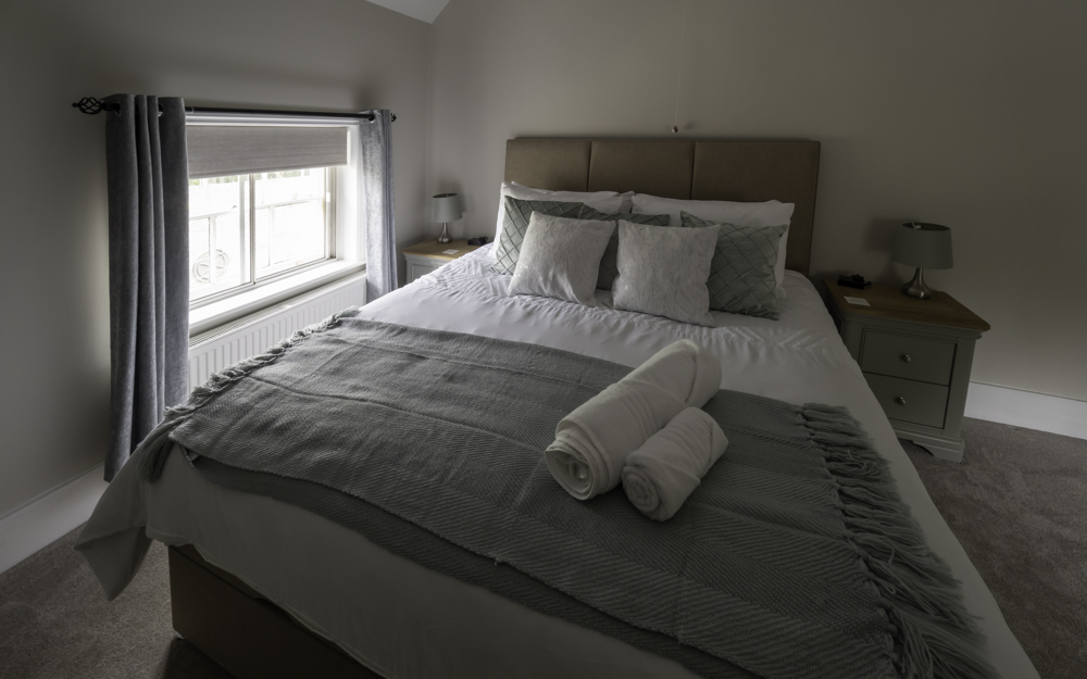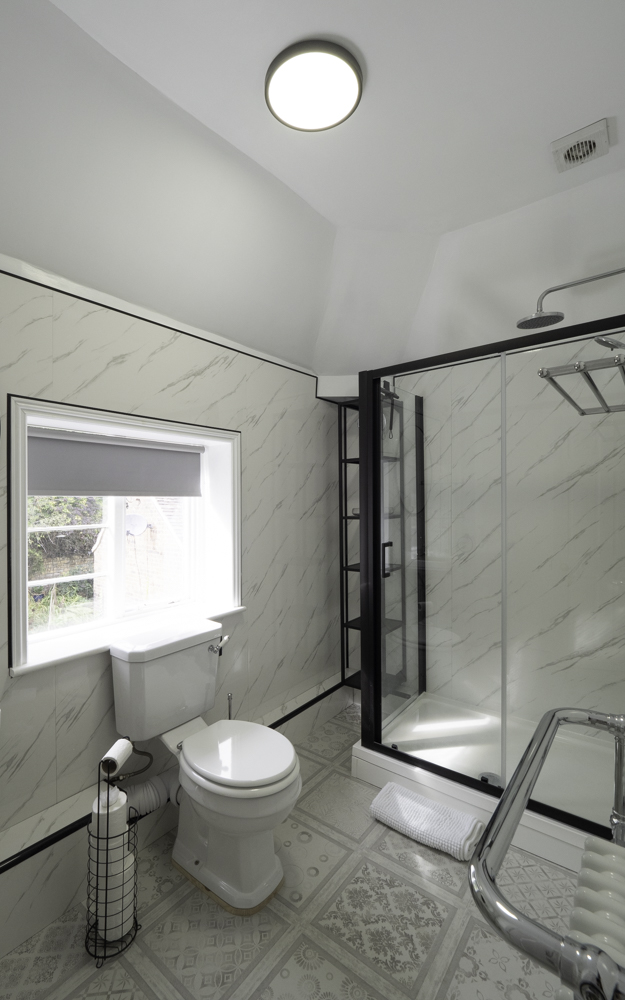 The room features a large en-suite bathroom with a double shower and complimentary toiletries, ensuring a comfortable and refreshing experience.